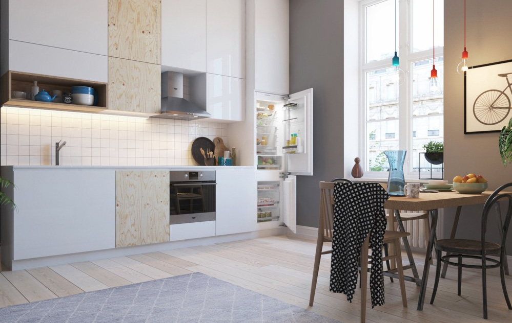 more efficiently. A straight-line kitchen is specially made for loft flats.