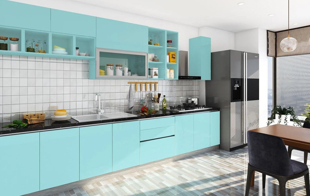 kitchen is an open-headed kitchen because it’s fixed against a single wall area.